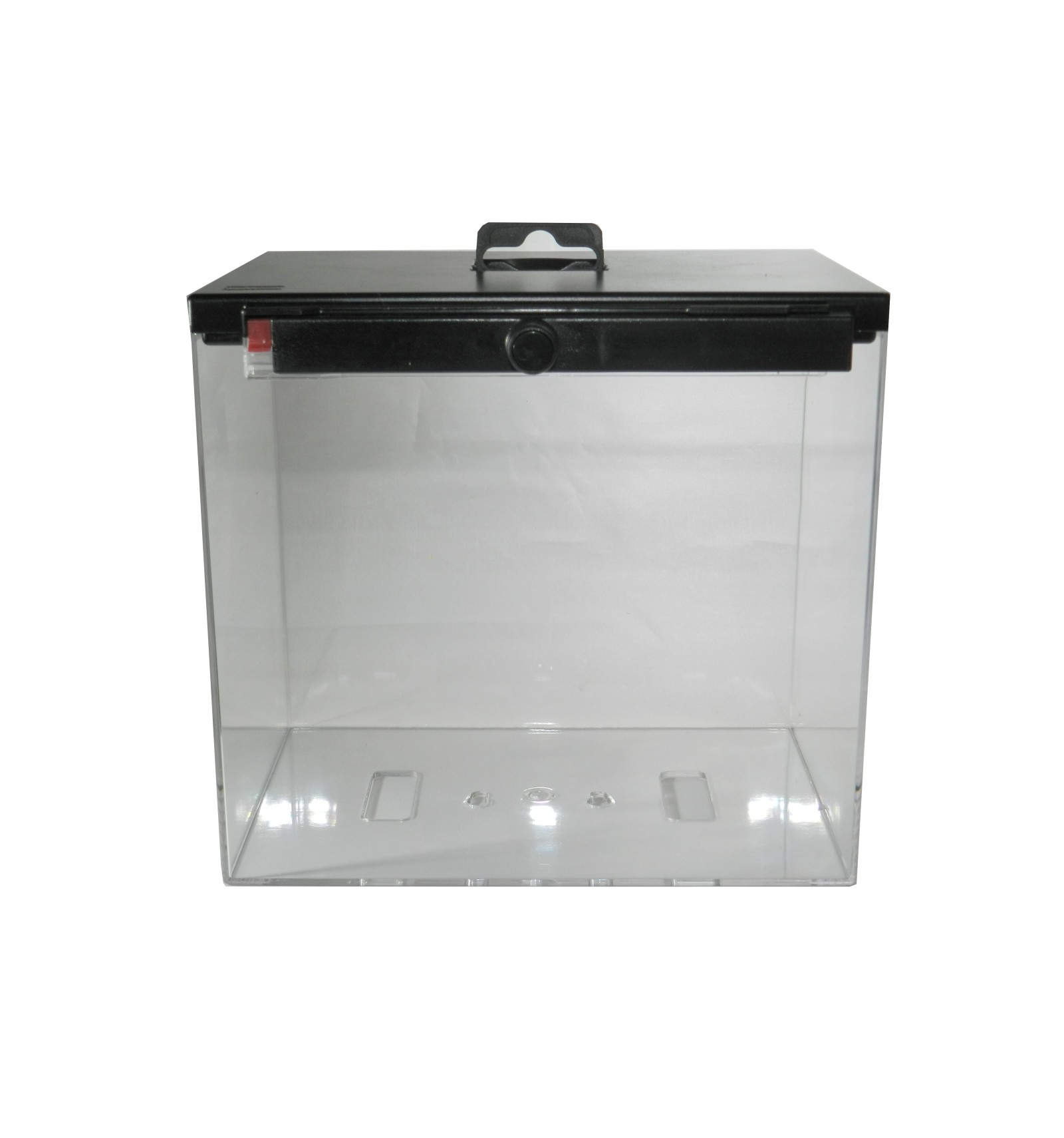 Caja de Policarbonato, material de alta resistencia, que permite alojar en su interior el producto que se desea proteger, conservando la disponibilidad de producto para el cliente..