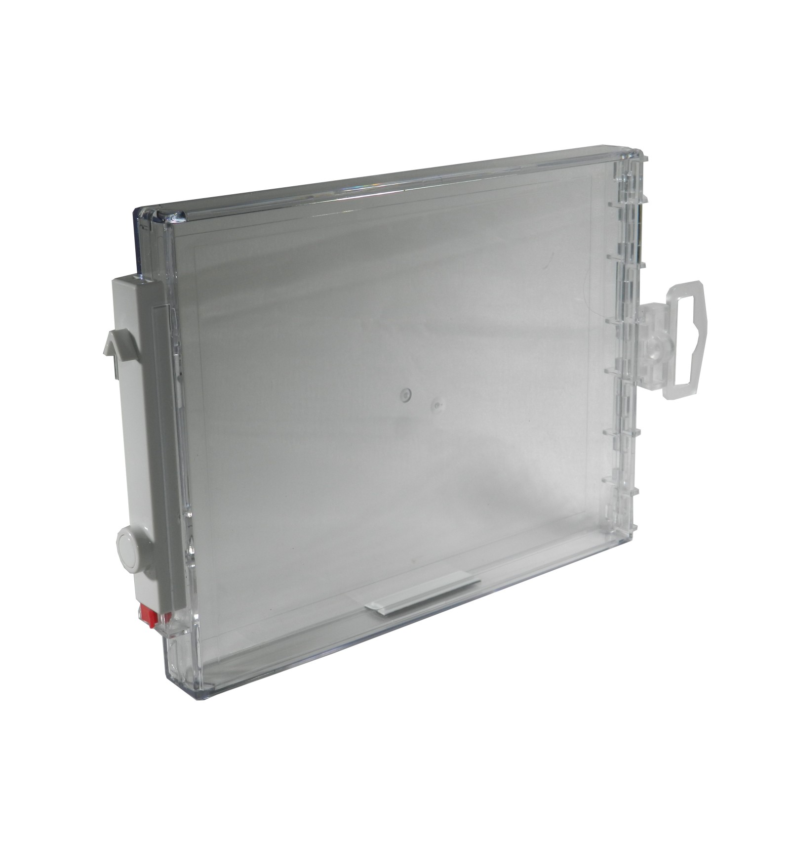 Caja de Policarbonato, material de alta resistencia, que permite alojar en su interior el producto que se desea proteger, conservando la disponibilidad de producto para el cliente.
