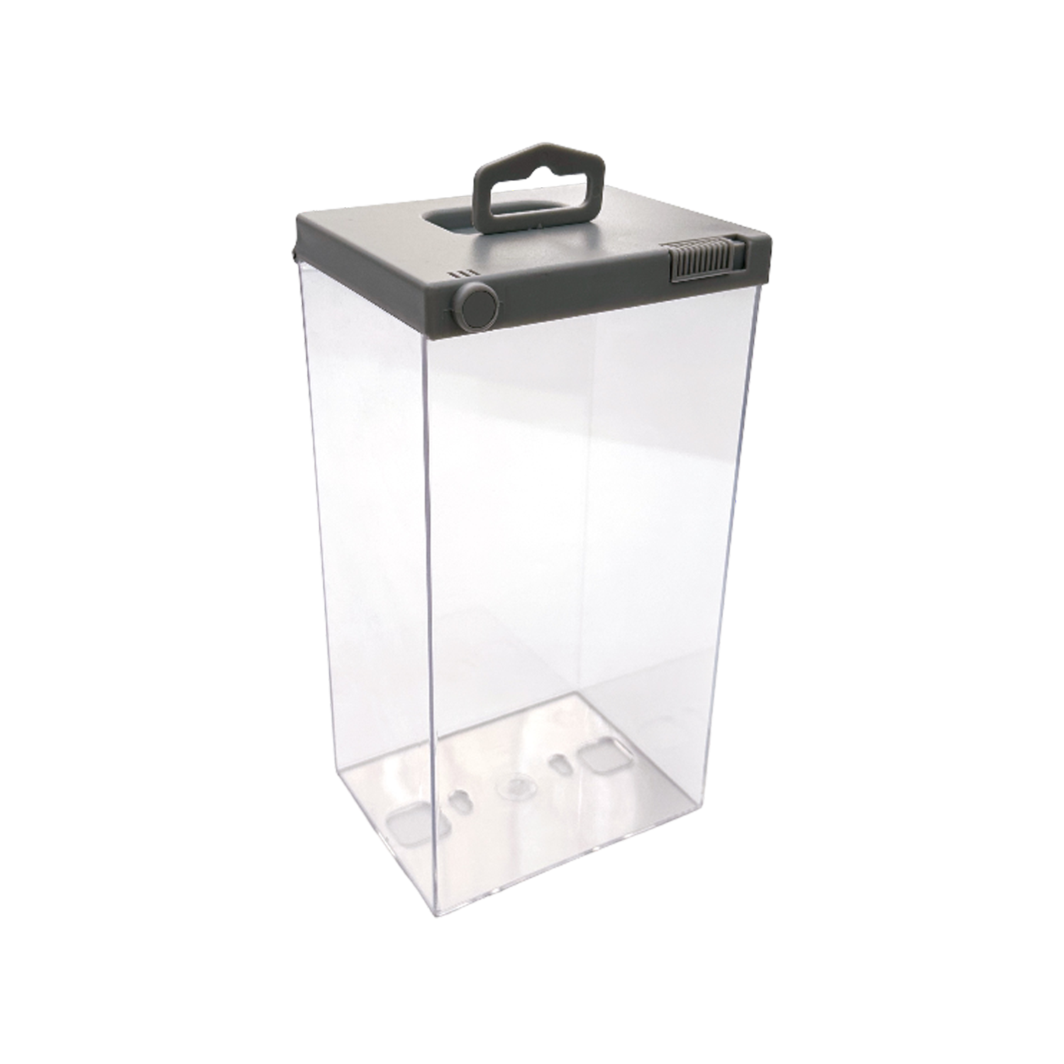 Caja de Policarbonato, material de alta resistencia, que permite alojar en su interior el producto que se desea proteger, conservando la disponibilidad de producto para el cliente.
