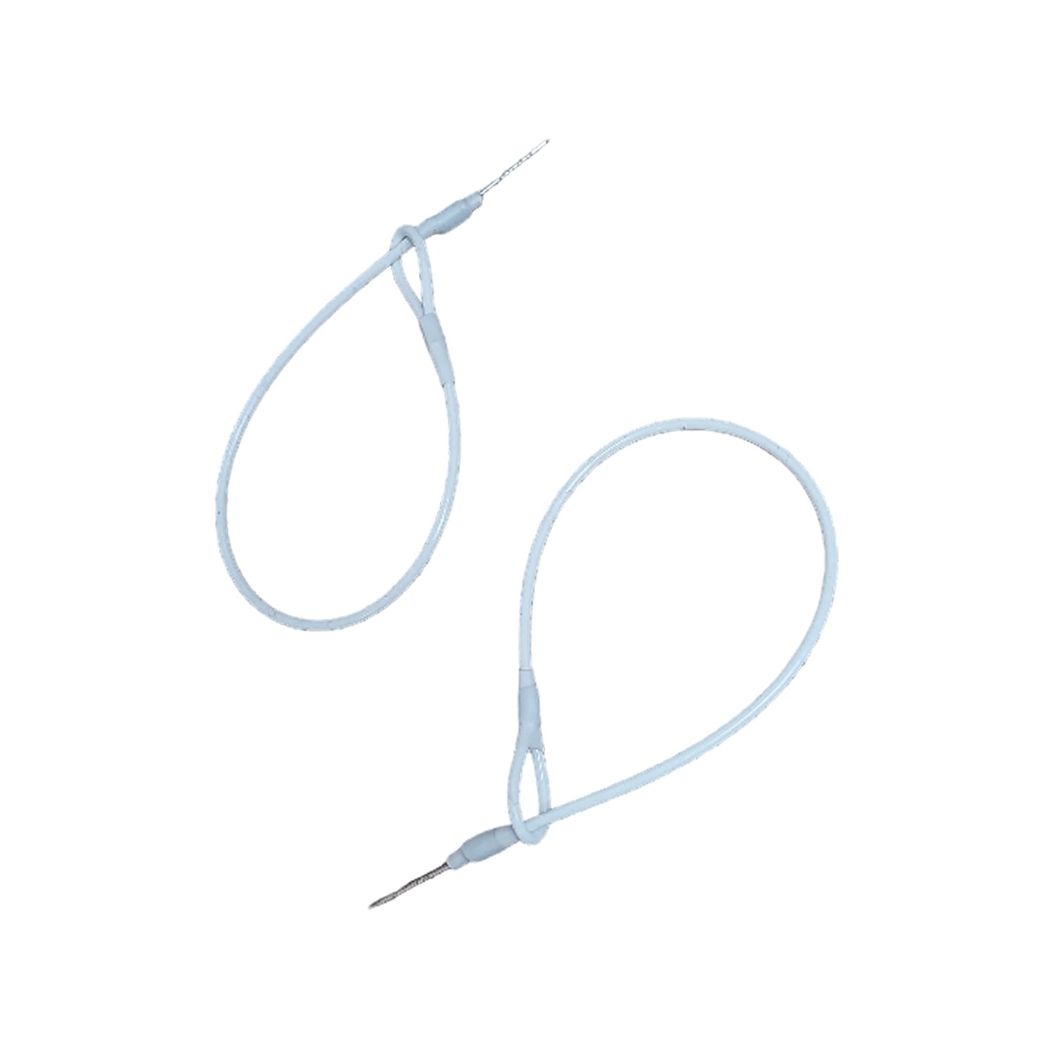 Cable de acero utilizado en conjunto con etiquetas duras, para fijar estas a distintos tipos de productos a proteger.